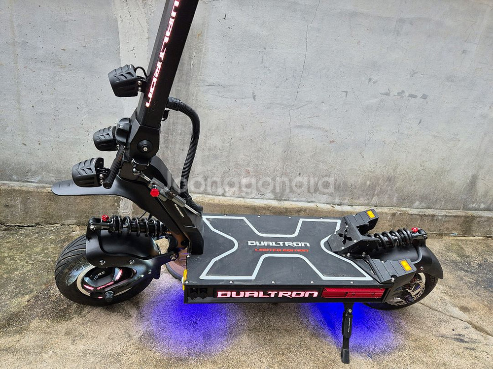 DUALTRON X LIMITED 팝니다 출력: 72V 42AH 배터리: LG 누적주행거리: 300km 충전기: 2개, 본체배터리용 급속충전기 1, 핸들바 배터리용 충전기 1 상태 최상으로 하자 전혀 없고 비맞치지도 않았습니다.. 은평구 직거래 가능합니다.. 관심있으신 분은 ***-****-**** 으로 연락주시기 바랍니다.. 상품 정보 내 개인정보는 자동 보호됩니다. 안심결제로 안전하게 거래하세요.