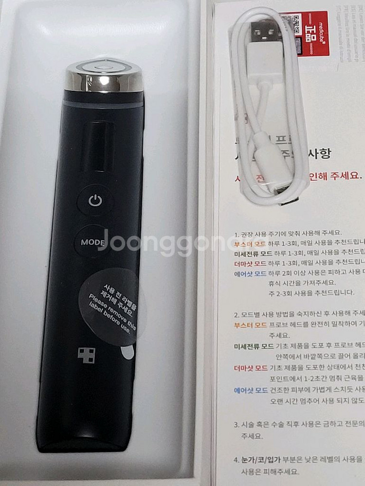 메디큐브 에이지알 부스터 프로 풀박스입니다 2025/7월 구매 3~4번 사용 닦으면서 깨끗이 사용했어요. -피부 속 탄력 개선에 도움을 줍니다. -4가지 모드(부스터, 미세전류, 더마샷, 에어샷)로 피부 고민에 맞춤 케어가 가능합니다. -피부 속 광채, 탄력, 모공, 피부결, 진피 치밀도 개선에 도움을 줍니다. 풀박스 구성 그대로 드립니다.