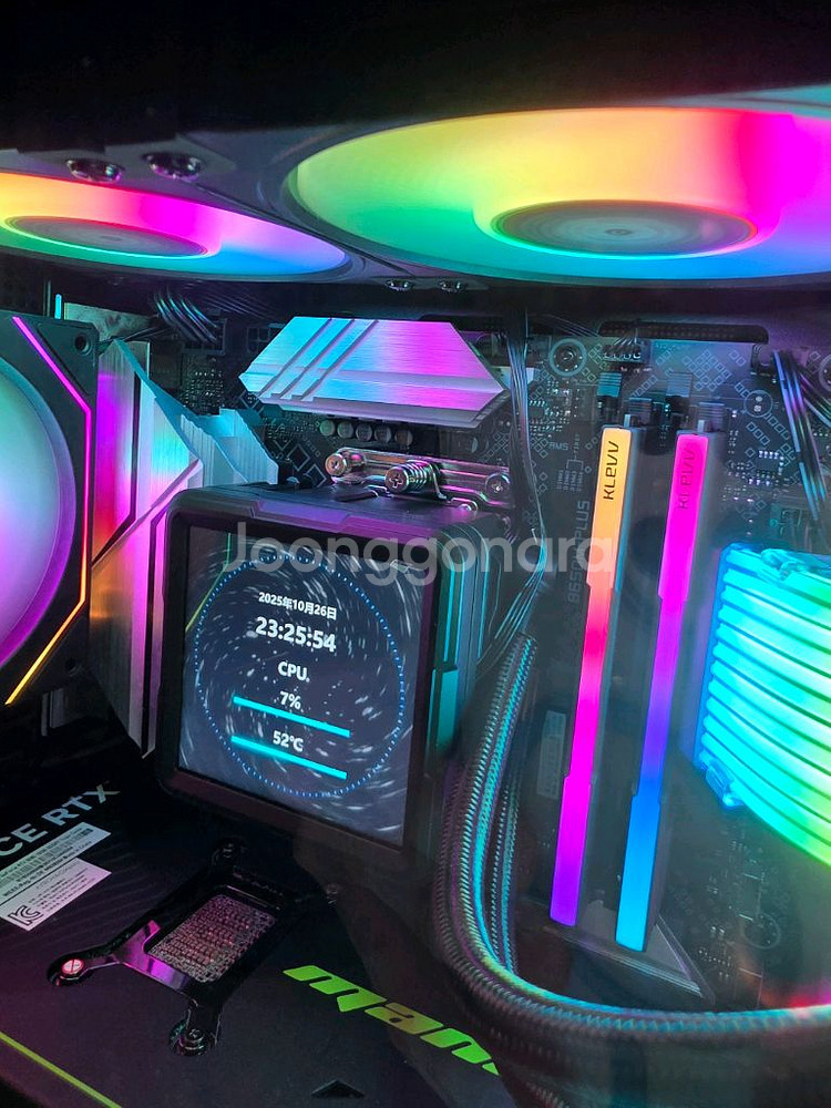 . 라이젠7 7800X3D B650M BATTLE-AX PLUS 컬러풀 DDR5-6000MHZ RGB 32GB RGB 튜닝램 Cl30 클래브 지포스 RTX5080 16GB MANLI 네뷸라 발키리 360 B시리즈 LCD 3열 수냉쿨러 일체형 - 블랙 SK 하이닉스.1TB , NVME SSD (1000GB) ENTIS 1000W EG GOLD 풀모듈러 화이트 파워 서플라이 윈도우11 메인보드 인증형 정품 LCD화면 꾸미기, 팬색상변경 모두가능합니다. 가지러오기 번거로우시면 예약금 5만입금시 제가 댁앞까지 가지고갑니다. 다나와서구매시 370만정도 합니다. 새상품인데 80만정도 싸게 팝니다. 하자일절없습니다. 제번호는 5317 2258 입니다, 수원이며 언제든 거래 가능합니다.