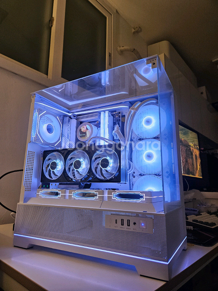 ● 프로세서 라이젠 9800x3d 국내정품 (제이씨현) ● 메인보드 기가바이트 B650m aorus ice 정품(제이씨현) ● 램 patriot ddr5 5600 16g x 2 32g 국내정품(파인인포) ● 저장장치 삼성 pm9a1 pcie4.0 1tb 국내정품(파인인포) ● 쿨러 다크플래쉬 DN 360 S 화이트 국내정품(다크플래쉬) ● 그래픽 갤럭시 RTX5070TI 국내정품 (갤럭시) ● 파워 SKULL 850sm ATX3.0 골드 cwt oem 정품(뉴젠) ● 케이스 wizmax 루프탑 국내정품(마이크로닉스) ● 기타 커스텀 부품 화이트 argb 리버스 쿨러 x 3 , 라이저케이블 , rgb 램방열판x2 고사양 게임 즐길수있는 적당한 사양입니다 상태는 그냥 최상이고요 일단 이뻐요 쿨러에 lcd가 달려서 커스텀 가능합니다. as기간 많이 남았어요 서울 직거래 거리 협의 가능 터미널 거래 가능 합니다.