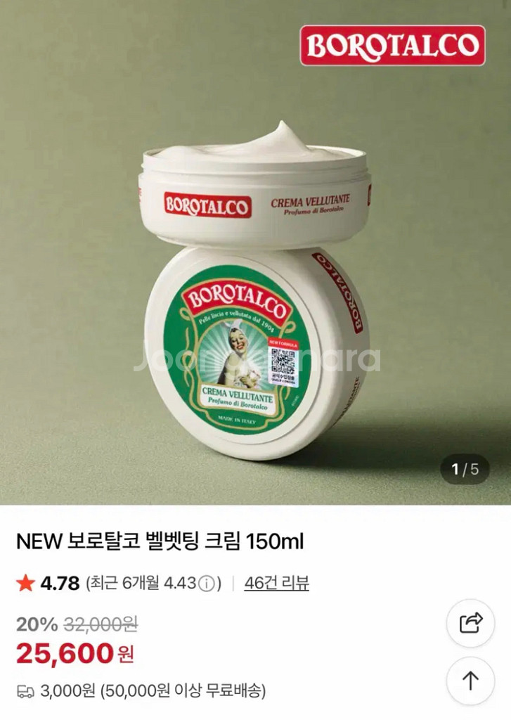 개봉도 하지 않은 새상품이고 유통기한 28년까지로 넉넉합니다 정품인증 큐알코드 부착되어 있는 정품입니다 공식 홈페이지에서 한 개에 32,000원에 판매하더라구요 저렴하게 구매하세요! 64,000원 ➡️ 32,000원 2개 세트로 판매합니다 개별 판매 ✖️ 유명한 이탈리아 브랜드 제품이라 알 사람은 알고 있는 보로탈코 바디 크림입니다 유통기한은 2028년 5월 9일까지 입니다 자세한 제품 설명은 위에 사진 참고해주세요! ◾️보로탈코(BOROTALCO)는 140년 전통의 이태리 바디 케어 브랜드입니다. 빈티지하고 레트로한 패키지와 사랑스 럽고 순수한 향기, 끈적임 없는 3중 보습 케어로 이태리 시 장점유율 1위를 달성하였습니다. 파우더리한 머스크 향을 베이스로 상큼한 과일 향과 화이트 플라워의 향을 담은 플로랄 머스크 계열의 퍼퓸 바디크림을 선보입니다 입금 확인 시 당일발송 해드려요💖 택배 시 착불 씨유 알뜰택배 가능🅾️ 가격조정✖️교환✖️환불✖️ ◾️채팅 바로 확인 못해서 늦을 수 있어요! 이해해 주셔서 감사합니다😊 ◾️제 상점에서 여러 개 사시면 할인해 드려요! 2개 구매 시 1000원 할인 3개 구매 시 2000원 할인