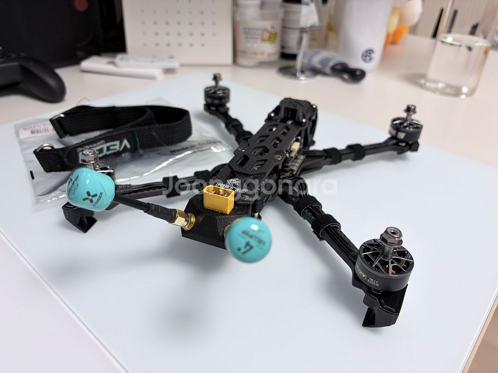 8월달에 조립한 기체입니다. 여러 대가 있는데 하나에 정착하게 되어 판매합니다. 상태는 매우 좋고 추락, 사고 없는 기체이고 커스텀 파츠 프린팅해서 들어가있습니다. 스펙은 아래와 같습니다. 프레임은 FlyFishRC Fifty5 FC는 Holybro Kakute H7 ESC는 H**ybr* Tekk*** *in* **A 메탈 케이싱 VTX는 DJI O4 Pro + 연장 케이블(써드파티) 모터는 Tmotor F60 Pro V 2020KV 4개 GPS는 Walksnail WS-M181 M10 컴퍼스 내장+배터리내장 버저는 수성RC에서 구매 전원부 캐패시터는 루비콘 560uF ZLH 안테나는 Foxeer 롤리팝 4+ 2개 기타 부속은 HQProp DP5x4.3x3 V2 한세트 배터리 그립 벨크로 O4 Pro 카메라에 ND32 필터 달려있습니다 클린 빌드하려고 케이블 배치 신경 많이 썼습니다. 모터 케이블은 ESC 하단으로 숨겼습니다. 베타플라이트 4.5.2이고 여름에 세팅한거라 모터 열관리를 위해서 PID는 보수적으로 잡혀있으나 반응성은 크게 문제 없습니다. 원하시면 마스터 좀더 올리셔도 됩니다. 꼭 관련지식 있는 분이 구매하셨으면 합니다. 쿨거래시 택배는 무료배송해드리고, 직거래는 이보다 많은 할인 해드립니다. 직거래는 양재 삼호물산 국민은행 앞에서, 택배거래는 편의점 택배 이용합니다. 네고는 찔러주세요. 대신 너무 차이 크면 안됩니다상품 정보 내 개인정보는 자동 보호됩니다. 안심결제로 안전하게 거래하세요.