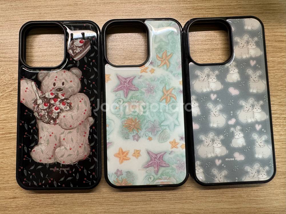 아이폰 15프로맥스 케이스 판매합니다! 모두 뮤즈무드 디자인 제품입니다. 모두 새상품입니다! 에폭시 재질이고 토끼모양케이스는 2,000추가 해서 glossy재질입니다! 포장박스는 없어요! 맥세이프는 없어요! 개당 9,000원
