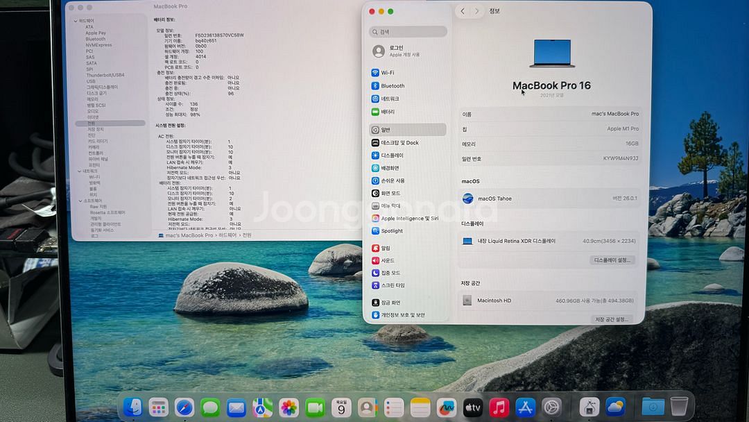 📌 제품 정보 모델명: MacBook Pro 16-inch (2021) – A2485 (M1 Pro) 프로세서: Apple M1 Pro (10코어 CPU / 16코어 GPU) RAM: 16GB 저장공간: 512GB SSD 배터리 사이클: 137회 (실사용 중이라 약간 변동 가능) 색상: 실버 📦 상태 설명 왼쪽 앞부분 찍힘 있음 오른쪽 모서리 및 하판에 스크래치 있음 (사진 참고) 최대한 잘 보이도록 촬영했으며, 외관 외에는 전반적으로 깨끗한 상태 HDMI 포트 작동 불가 외관 관련 네고 불가 📦 구성품 기본: 본체 단품 +8만원 추가 시 → 박스 & 정품 140W 충전기 & 맥세이프 케이블 세트 제공 가능 ✅ 장점 M1 Pro 칩 탑재로 강력한 성능과 안정성 16GB 메모리 + 512GB SSD 구성으로 실사용에 충분 배터리 효율 96%, 전반적으로 양호한 상태 ⚠️ 주의사항 외관 찍힘 및 스크래치 존재 (사진 참고) HDMI 포트 불량 있음 외관 및 하자 관련 네고, 클레임 정중히 사절드립니다