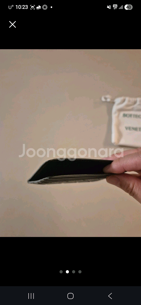 보테가 베네타 카드지갑입니다. 색상은 진~한 딥카키컬러입니다!💚🖤 사진상으로는 블랙인데 빛에 비추면 정말 예쁜 녹진 딥한 카키 컬러에요! 진짜 고급집니다.. 앞뒤 카드 3칸씩 + 지폐 편하게 넣을수있는 칸(사진참고) 잠실 롯데에비뉴엘점에서 구매해서 남편 선물해준건데, 저랑은 반대로 반지갑을 써서 아예 사용을 안합니다 ㅜ (구매당시 50만원 넘게 주고 구매/2021년) 구성품 : 더스트백