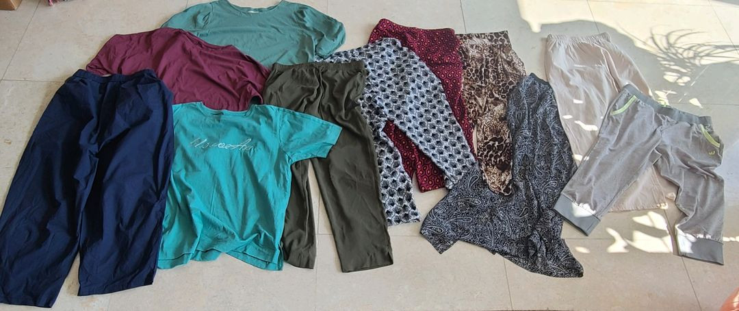 집에서 편하게 입기 좋은 티셔츠/ 바지 11벌(55~77) 전부 만원 * 면 티셔츠는 박스형이라 헐렁하게 입기 좋습니다. 바지는 고무줄로 되어 있어 착용이 편합니다. * 옷 상태 좋습니다.