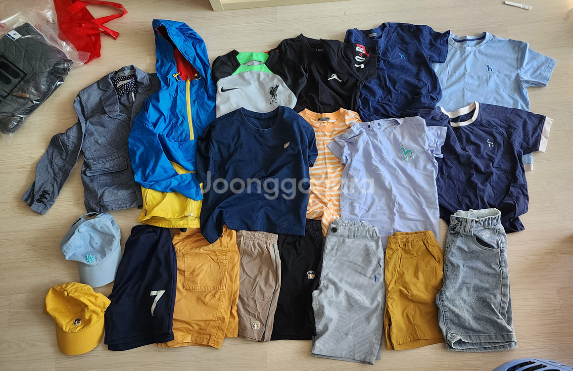 남아 3학년 정도 입을 수 있는 여름옷입니다. 아이들마다 성장 속도가 다르고, 원하는 핏이 다르기에 사이즈 조언은 어렵고, 대신 옷에 부착된 사이즈를 기입합니다. 대부분은 해지스 키즈옷입니다. 상의는 145(11y)가 대부분이고(일부옷 택 제거) 특별하게 큰 오염이나 손상 없는 상태이나 입었던 옷이기에 사용감 있는 상태입니다. 바지는 130(9y)사이즈가 대부분입니다. 바지 사진 중에 윗줄 4벌은 헤지스키즈 제품, 아래줄은 여러가지 브랜드 제품이며 윗줄 옷보다는 사이즈가 넉넉한 편입니다. 빈폴 홑겹자켓과 노스페이스 홑겹바람막이, 캡모자 2개(하늘색 MLB 모자는 뒷면 사이즈 조절하는 장치가 빠져서 수선해서 쓰셔야하는데 필요없으시다 하면 제가 폐기 하도록 하겠습니다. 가격은 택포 4만5천원입니다.