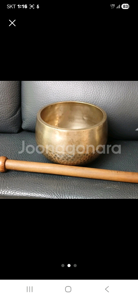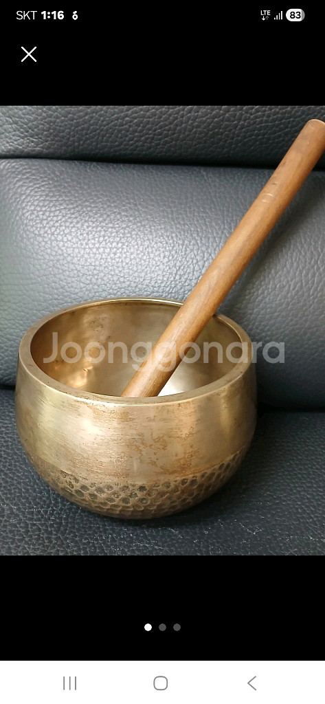 대형 싱잉볼세트 소개드립니다 요가ㆍ참선 등등에 사용하려 구매했는데 써먹을 기회한번없이 보관만해두니 약간의 세윌의흔적이 남았읍니다 높이ㅡ 14cm 지름ㅡ17cm 나옵니다 심신수련시에 마음의 안정을 찿게 도움을주는 싱잉볼세트 개인소장 적극적으로 추천합니다