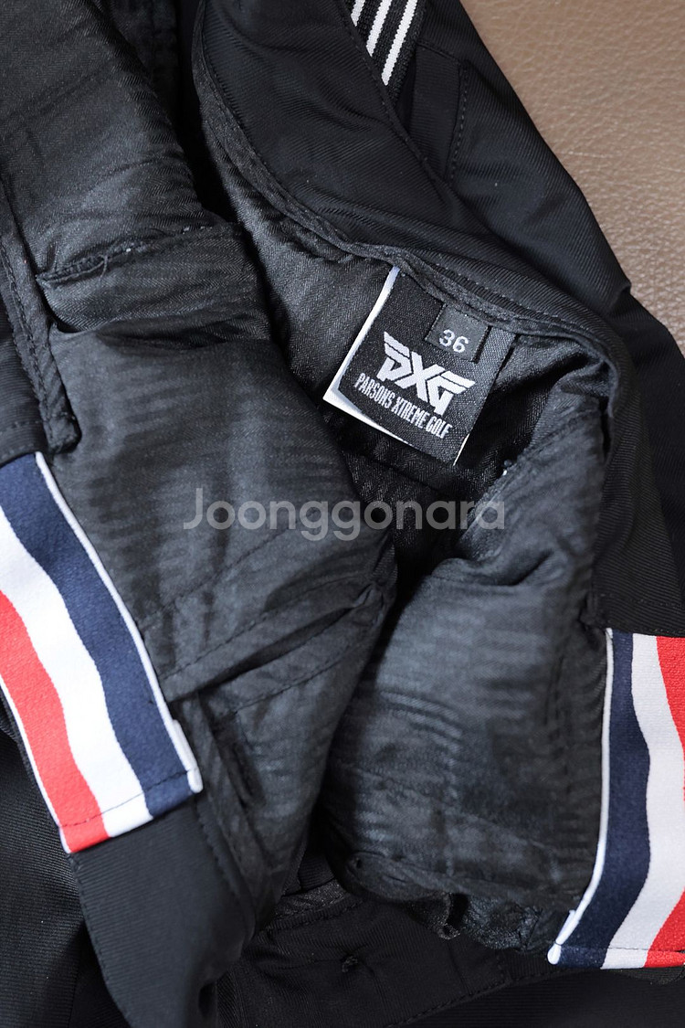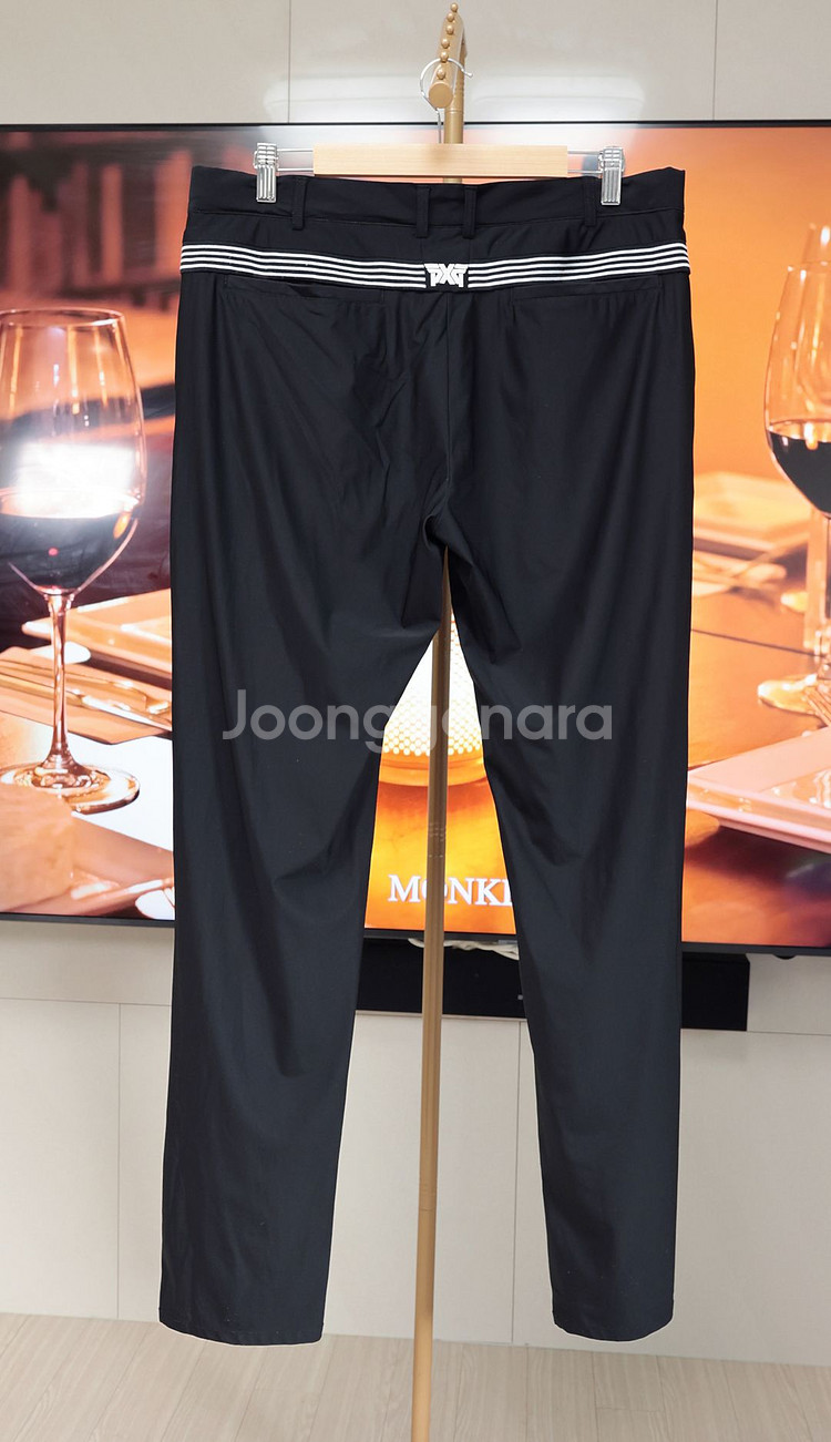 PXG 스트라이프 밴드 블랙 슬랙스 36사이즈 골프·데일리 겸용 “입어보면, 왜 PXG인지 알게 돼유.” PXG의 시그니처 로고 밴드가 포인트인 고급 슬랙스입니다. 허리 뒤쪽의 화이트 스트라이프 밴드와 PXG 로고 포인트가 깔끔하면서도 스포티한 느낌을 줍니다. 사이즈: 36 (실측 허리단면 47cm / 허벅지 32 / 밑위 27 / 총기장 106cm) 허리 밴드에 스판 있음 (34~36inch 커버 가능) 고급 나일론+스판 혼방 원단으로 구김 거의 없음 허리라인의 로고밴드 디테일, 골프웨어 감성 그대로 살리면서 일상복으로도 자연스러움 뒷주머니 PXG 각인 단추, 안감 배색 라인으로 마감 퀄리티 높음 평소 L~XL 입는 분께 정핏 / XXL 분께 슬림핏으로 맞습니다. 밑단 좁아지는 테이퍼드 라인이라 운동화나 로퍼 둘 다 잘 어울림이에요. 진한 블랙 컬러로 어떤 상의에도 잘 어울리고, 광택 없이 고급스러운 질감이라 출근룩~골프웨어~모임룩 다 커버됩니다. 가벼운 원단이라 여름~초가을까지 착용 가능하며, 입으면 라인 예쁘게 떨어져서 다리 길어 보입니다.