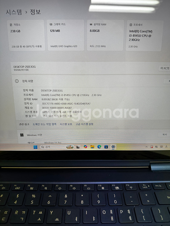 외관상태 깨끗해요! 하자 ❌ 없습니다! 모델명 : 삼성 노트북 PEN S NT950SEB-K38 구성품 : 본체,터치펜(내장),충전기 크기 : 13인치 CPU : i3-8145U 램 : 8GB 용량 : 256GB 그래픽 : UHD620 배터리효율 : 76.5%