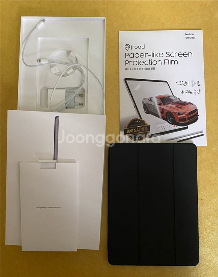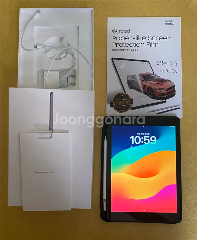 아이패드 9세대 256. wifi 풀박스 구매하면서 액정강화유리와 스마트케이스 부착하여 액정 포함하여 패드 전체 새제품급으로 상태 좋아요. 배터리효율도 99%라 사용 거의 안했습니다. 새제품 종이필름과 패드 구매하며 함께 구매한 펜슬 정품 포함읋 풀박스입니다. 40만원