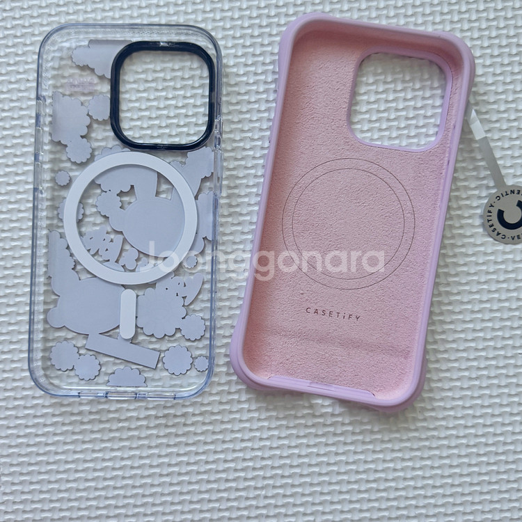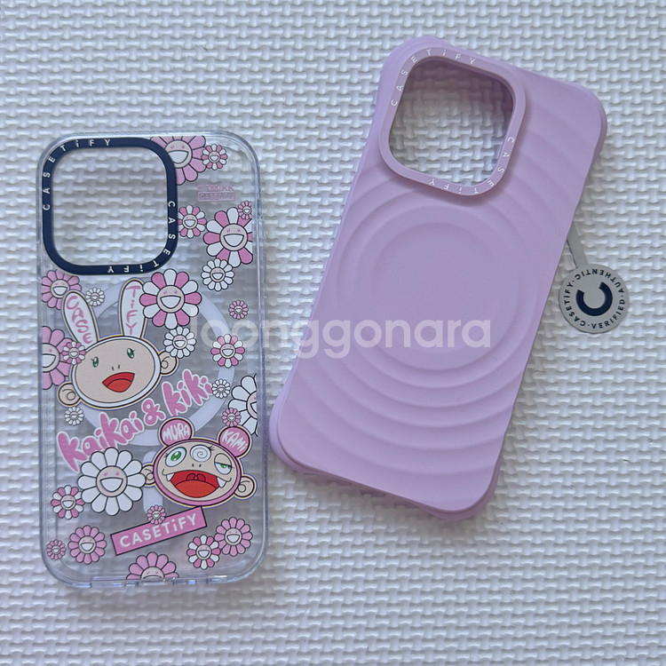 케이스티파이 아이폰 15 Pro 케이스 1. 리플케이스 핑크 6만원 (25.02구입 / qr택 유/ 구매후 실착만 하고 보관) 2. 무라카미 한정판 케이스 7만원 (25.07.26구입 / 영수증 유/ 실사용 5회 미만 상태최상) 개별 구입 가능 2개 모두 구입시 마루 맥세이프 스마트톡 드려요 네고 불가 ‼️ - 케이스티파이 정품 - 아이폰 15 Pro 기종 - 카이 키키 무라카미 콜라보 에디션 - 맥세이프 충전 가능