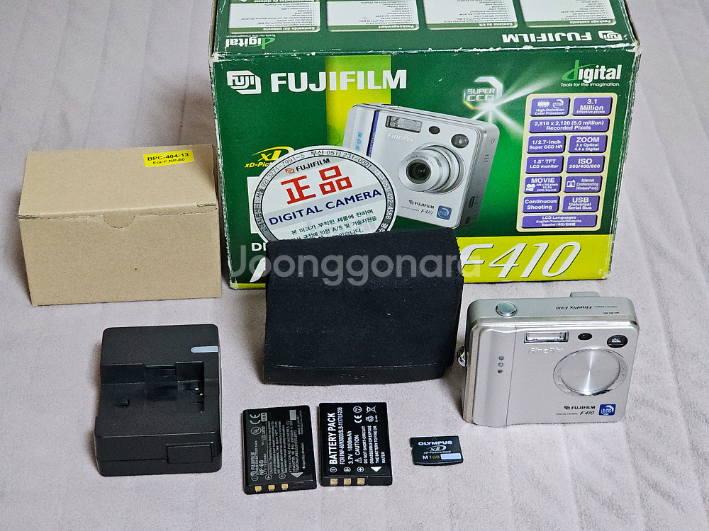 후지필름 FinePix F410 디지털 카메라입니다 - 3배 광학 줌으로 선명한 사진을 찍을 수 있습니다 - 630만 화소로 고화질 이미지를 얻을 수 있습니다 - 레트로 디자인으로 독특한 감성을 느낄 수 있습니다 박스, 배터리, XD카드 1GB, 충전기, 전용케이스 포함