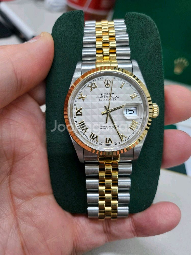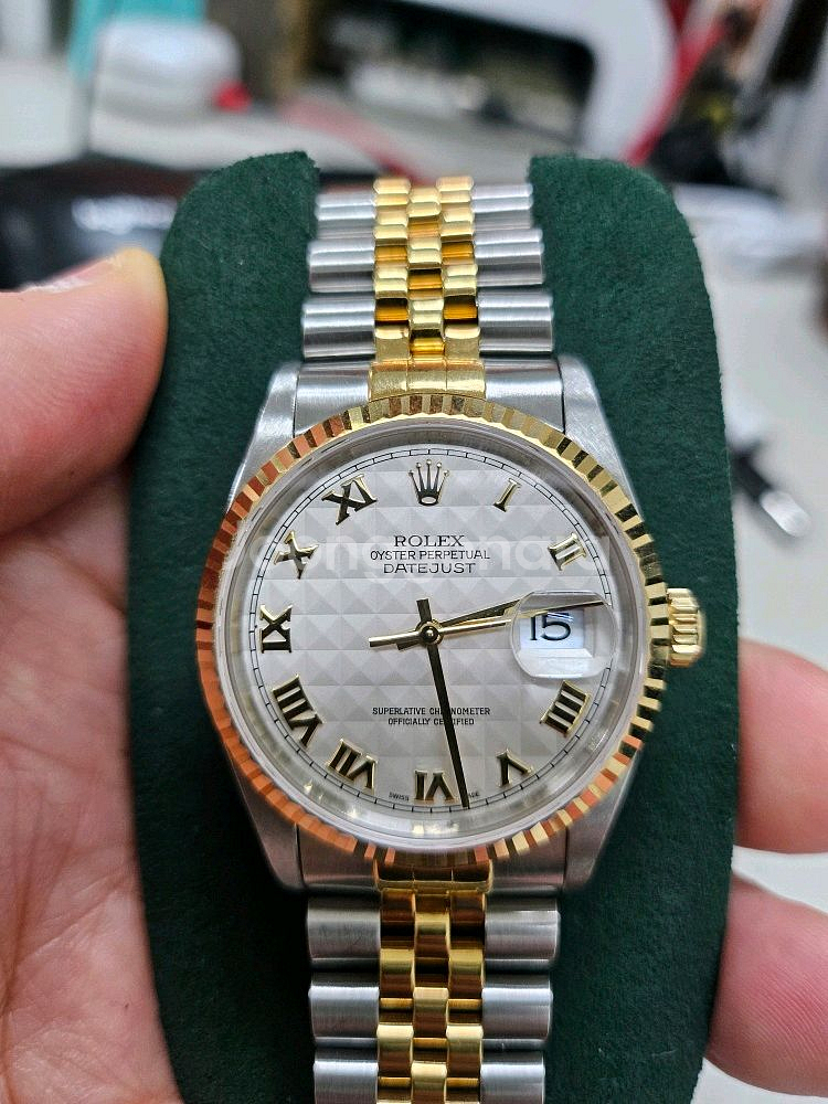 Rolex 16233 정식 c/s 오버홀 완료 제품 판매합니다. * 강남 소재 명품중고샵 ㅋㅋㅅ 2차구매 * 지난 25년 3월 역삼c/s 오버홀 의뢰하여 25.04.14 수령. * 폴리싱 제외, date indicator, 핸즈, 용두 및 글래스 교체 포함 일체 수리 완료, 최상 컨디션 코 갯수 : 21 * W단위 * 구성품 : 시계본품 + 오버홀 보증서(~27.05 까지 보증) + 박스 ( 오래된 연식으로 상태는 좋지 않음 ) 흔지 않은 아이보리 피라미드 순정 다이얼로, 올드해 보이지 않아 연령 상관 없이 편하게 착용 가능한 제품입니다. 오버홀 서류 및 해당 비용 카드 결제 영수증까지 같이 제공 드립니다. 판매가격 720 만원. 찔러보기 네고문의에는 죄송하지만 답변 드리지 않습니다. 을지로입구역 평일 17시까지 직거래 가능하며 ***-****-**** 문자 문의 부탁 드립니다. 상품 정보 내 개인정보는 자동 보호됩니다. 안심결제로 안전하게 거래하세요.