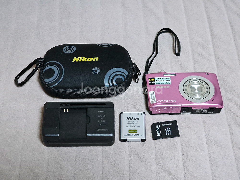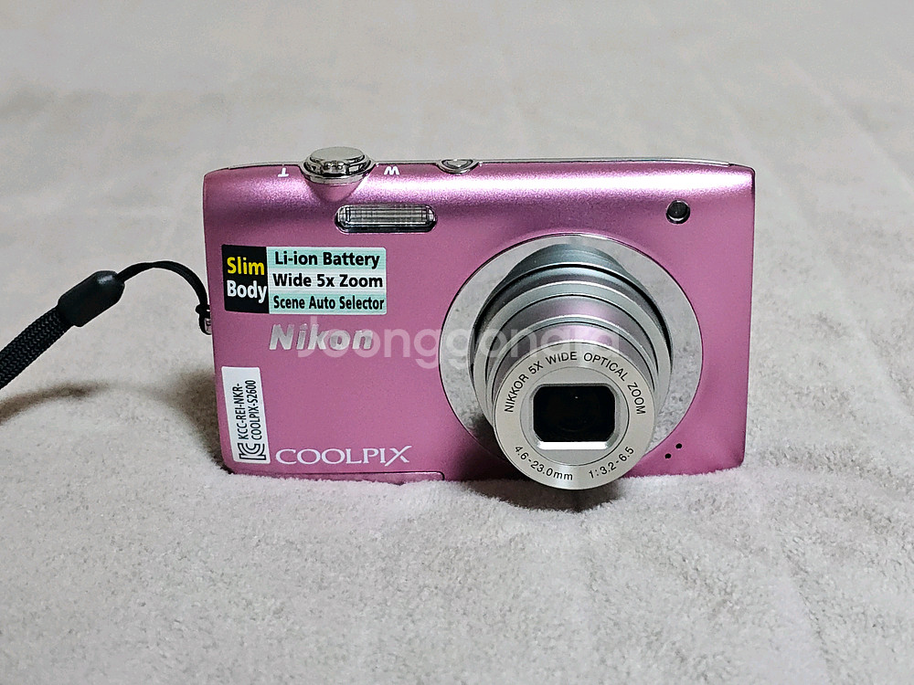 니콘 쿨픽스 S2600 핑크색 디지털 카메라입니다 - 슬림 바디로 휴대하기 좋습니다 - 5배 줌 기능으로 멀리 있는 피사체도 선명하게 촬영할 수 있습니다 - 깔끔한 컨디션입니다. - 구성 본체, 정품배터리, 멀티충전기, SD카드16GB, 전용파우치
