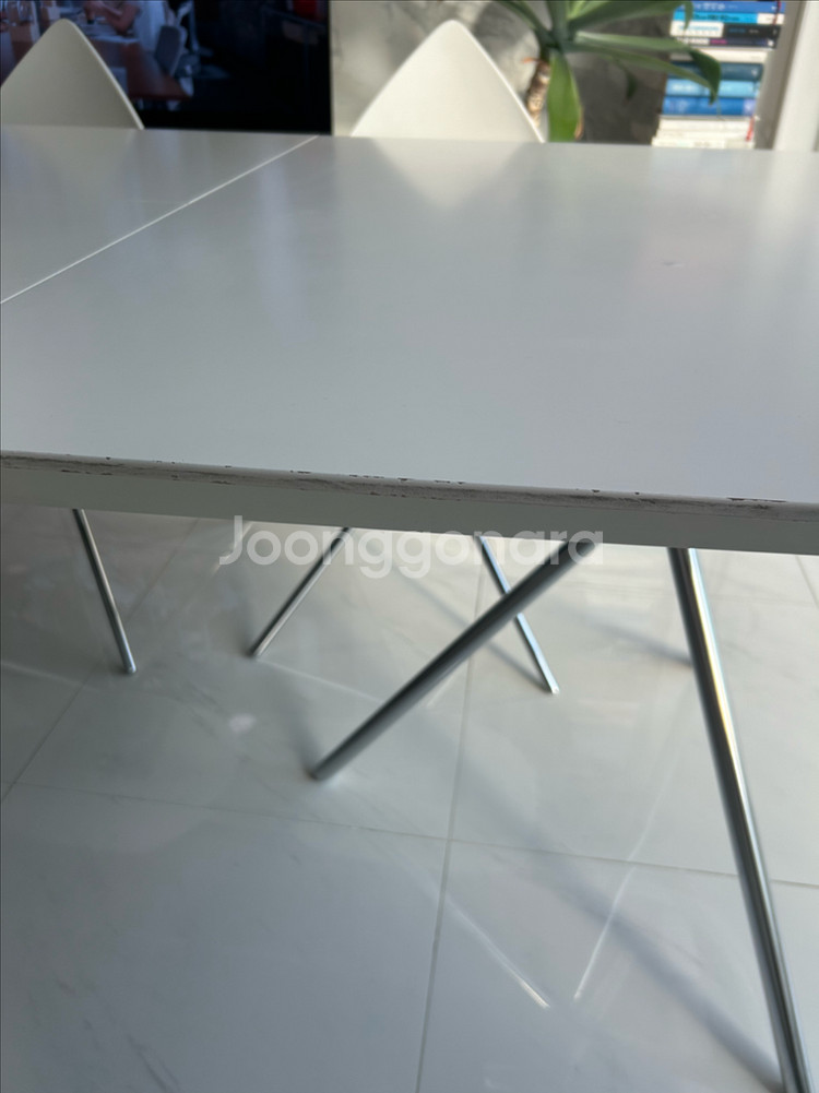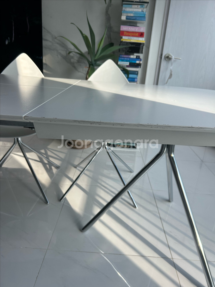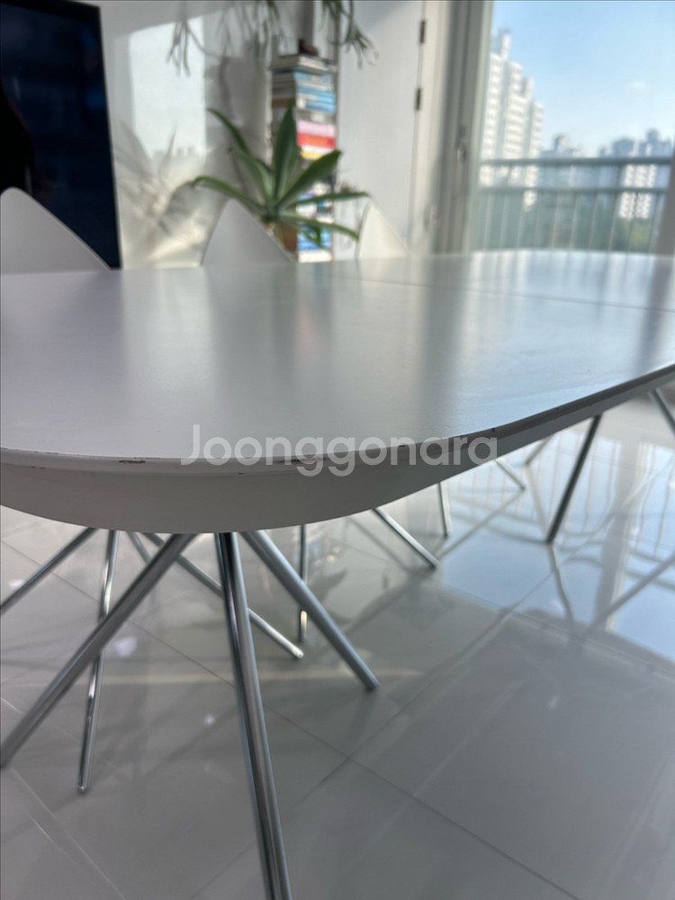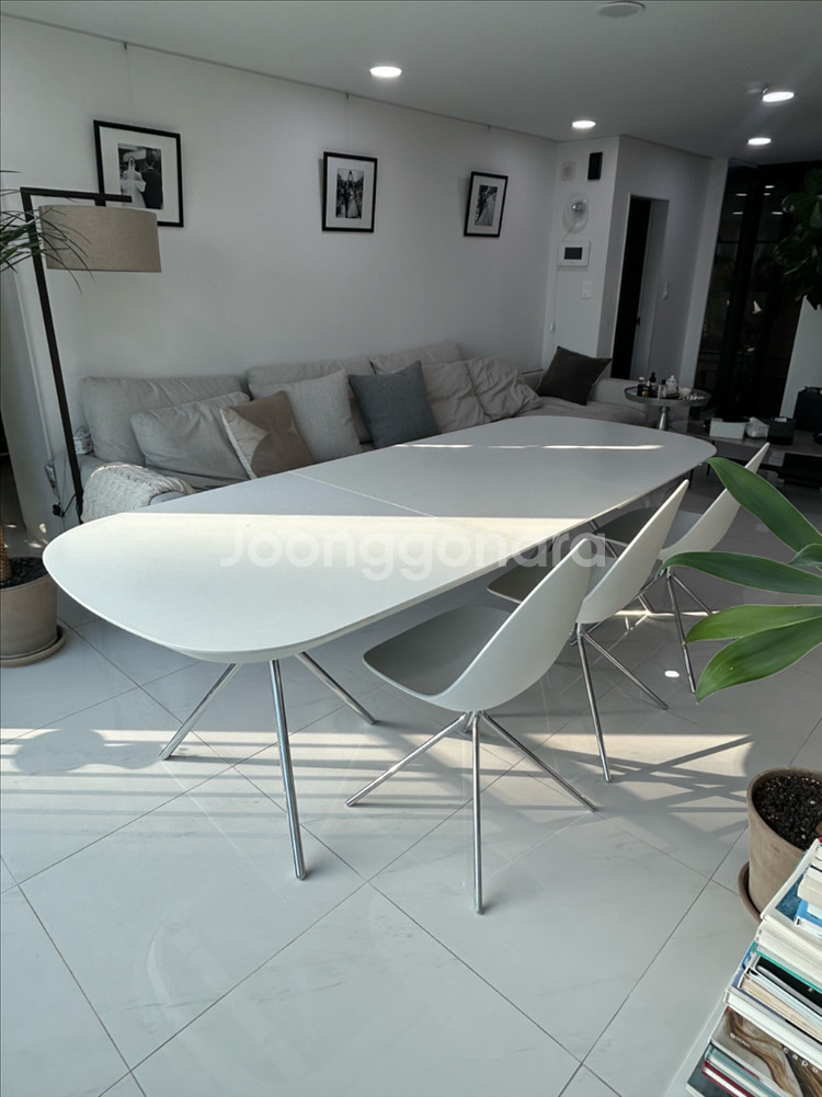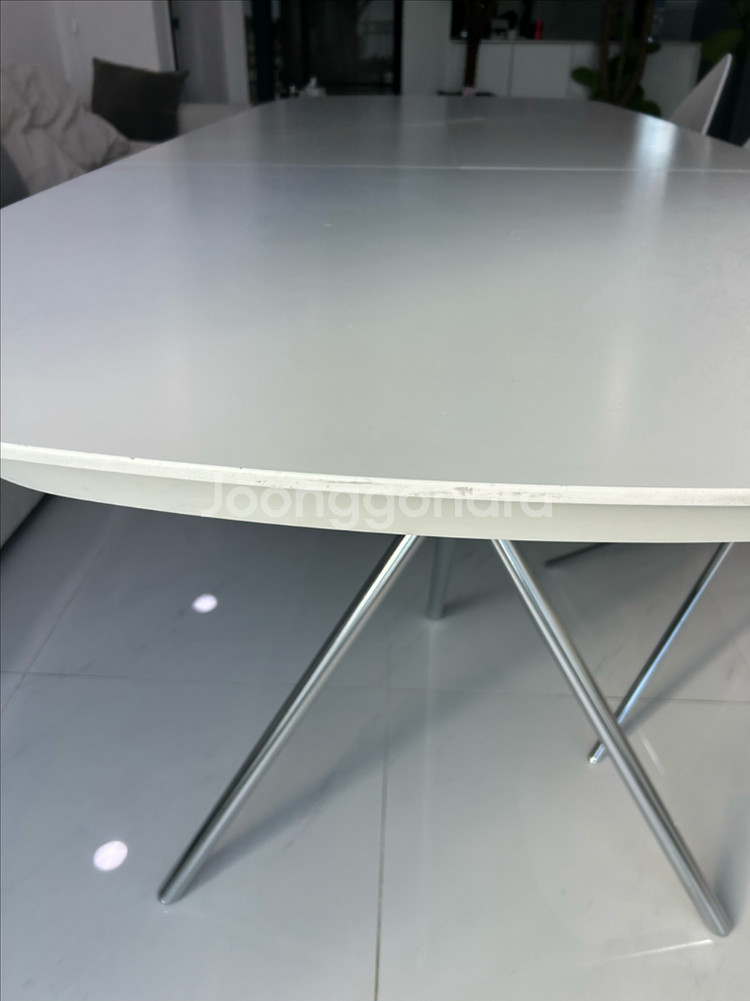 BoConcept 보컨셉 오타와 다이닝 확장 테이블 식탁 - 디자이너 카림 라시드 - 상판 :화이트 오크우드 / 다리 :크롬 실버 - 가로 185 (250) * 세로 100* 높이 120cm - 20년 청담 보컨셉 구매 - 정상가 약 400만원(크롬은 단종이라 구할 수 없음) 집 평형에 맞게 식탁을 새로 바꾸면서 처분합니다. 치명적인 하자는 없어보이나, 자연스러운 사용감이 있어 저렴히 판매합니다. 멀리서 보면 잘 안보이나, 당근하려고 자세히 살펴보니 테두리 하단 부분 헤짐, 상판에는 두군데 정도 보이네요. Ottawa 오크우드 특성이니 테이블 잘 아시는 분과 거래했으면 합니다. 상세히 사진 올려두었으니 꼼꼼히 보시고 구매의사 있으신 분만 연락부탁드립니다. * 매장 확인해보니 “출장비 5만원에 보컨셉 리페어펜 as”가능, 상판 1개(3개중) new 교체 시 90만원정도라네요. 프레임은 사실 새거나 다름없으니 새상품 구매 고려하시는 분들은 일부 유상 as도 고려해보시면 되겠어요. 숨고 같은 플랫폼에서 사설 수리는 더 저렴한 것으로 알고 있어요. 양심 판매자로 사용하지도 못할 물건 올리지 않아요. 시세 확인하여 사진 상세히 올려놓았으며, 구매의사 있으신 분께는 상세히 사진 더 보내드릴게요. 중고거래 특성상 환불 불가하며, 펑 방지 예약금 10만원 있습니다. 원목+철제인지라 무게가 있고, 2명이서 상하차 필요할 것 같아요. 필요 시 서울 기준 20만 이내로 용달불러드릴 수 있습니다. (비용은 구매자 부담) 물건은 부천 상동에 있어요.