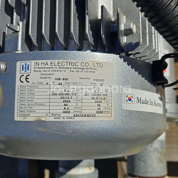 작동 잘되며, 조용하고 바람 아주 셉니다. 많이 사용 안했습니다. 현재 결선380V 8.4마력 (국산) 직거래는 주소 참조 하시고 지방은 대신 화물 착불로 보내드립니다. 새거 190정도 합니다.