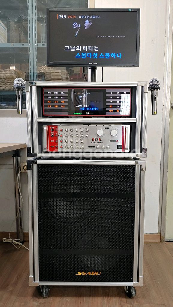 금영 이동식 노래방 풀세트입니다 앰프, 반주기, 스피커, 모니터, 마이크 모두 포함되어 있습니다 바로 사용 가능합니다. 최고급반주기Q300 풀세트입니다. 사진 여러장 올려두었습니다. 악보기능등 확인하시고 필요하신분 구매하세요. 전원만 연결하면 바로사용할수있습니다. 최신곡업데이트반주기와 성능좋은 앰프외 기타 제품은 모두 새제품입니다. 성능 완벽한 제품입니다 !!! 화면은 사용중인 티비나 모니터에 연결하세요. 사진의 모니터는 필요하신분께 함께 드리겠습니다. ㅇㅡㅇ 에 팔사칠공에 일이사오로 연락주세요. 시간관계상 폰은 자주확인을 못합니다. 남양주덕소와부입니다.
