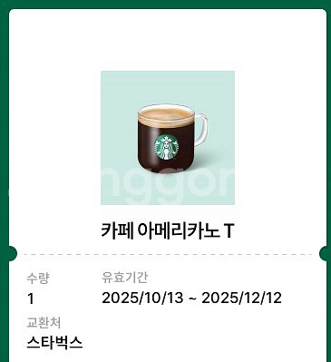 25.12.12까지에요. 정가 4,700원 스타벅스 아메리카노 입니다