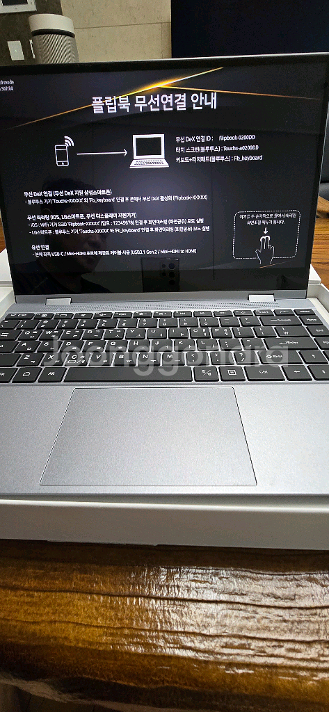 플립북 14인치 삼성 겔럭시 덱스 무선 모델입니다 삼성 무선 DeX 전용 플립북 14 Wireless 모델입니다. 스마트폰 하나로 노트북처럼 쓸 수 있는 무선 디스플레이 기기예요. ✅ 삼성 갤럭시 무선 DeX 완벽 호환 ✅ 블루투스 키보드 & 터치패드 내장 ✅ 터치스크린 / 360도 회전 지원 ✅ USB-C, 미니HDMI 유선 연결 가능 ✅ 배터리 내장(7.4V 5000mAh) 전체 카본 필름 부착해서 상태 SS급 전용 가죽 파우치도 드립니다 총 3회 정도만 사용한 완전 새것 수준(SS급) 입니다. 박스 포함