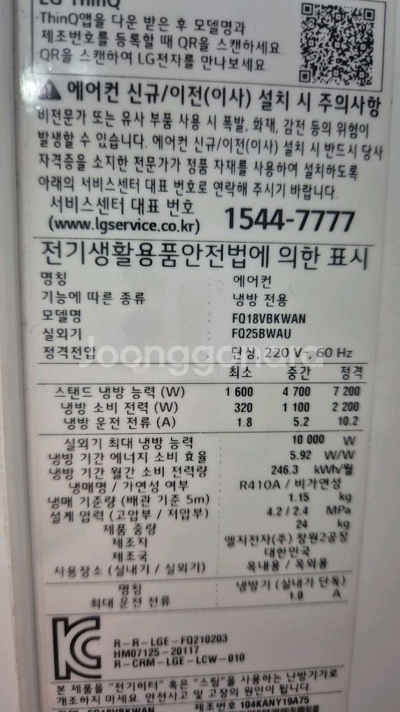 엘지전자 에어컨 2in1에어컨 에어컨 스탠드.벽걸이 청소완료 피톤치드까지했음 그 이후 미사용 이사로인해 분해해놓은상태 직거래 인천부평 용달와서 물건가져가시고 에어컨설치만하시면 끝입니다. 2025년6월청소완료 이사하는집에 에어컨이있어서 사용못하고 다용도실에보관했는데 와이프가 정리하자해서 판매합니다. 제조년월 21.4월 구입시기 22년6월 딱3년사용했네요. 여름에만사용해서 상태좋구요. 리모컨도 스탠드별도 벽걸이 별도입니다. 스탠드18평입니다 비슷한디자인에 평형이 나뉘어져있어요. 이 모델은 스탠드18평 벽걸이6평으로 알고있네요.