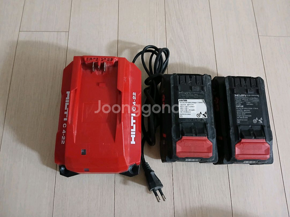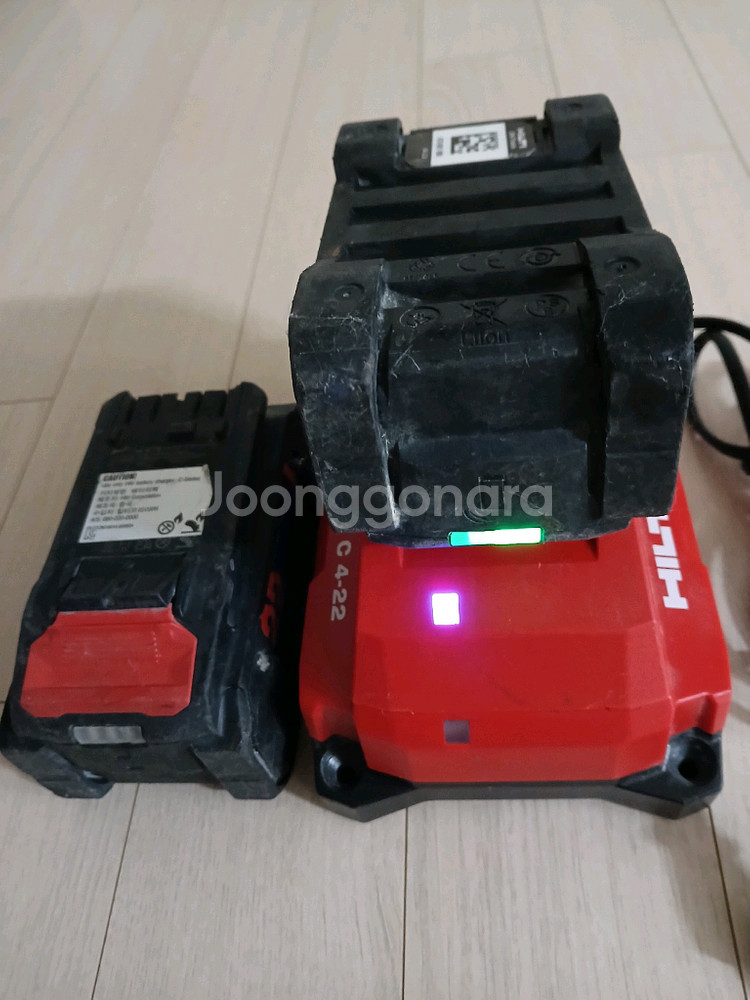 힐티 C4-22 충전기와 누런배터리 2개 판매. 충전기는 개봉 후 기존 충전기사용으로 사용량이 매우적습니다. 배터리역시 작업량많지 않아 몇번쓰지않다가 본체 분실로 판매합니다. 깨짐은없고 약간의 스크래치다수있습니다.