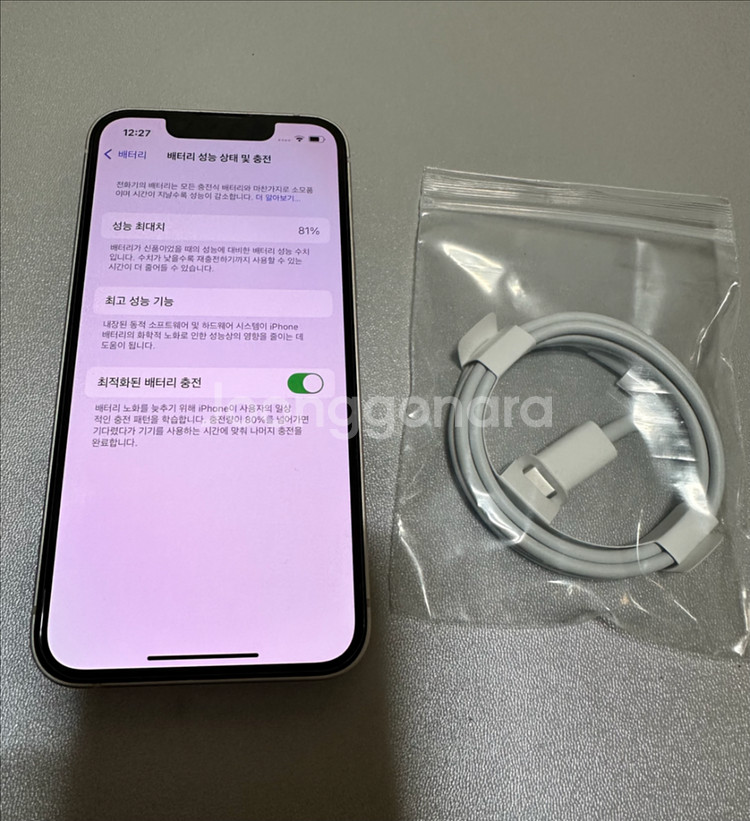 아이폰 13미니 128 ,배터리81프로,스타라이트 모든 기능 정상 배터리 ㅡ81프로 상태 ㅡA급 스타라이트 128기가 ㅡ미사용 정품케이블 포함 구매원하시면 안전 결재 하시면 됩니다! 궁금한게 있으시면 문의주시면 되구요 그냥.안.사실꺼면서 찔러보기는 하지마세요 안전결재만 가능 평일 4시30또는 금요일 4시 30분까지 안전결재 하시면 하루만에 배송되는 우체국 택배로 배송 토요일 11시전 까지 안전결재 하시면 일요일도 배송되는 cj대한통운으로 발송해드려요