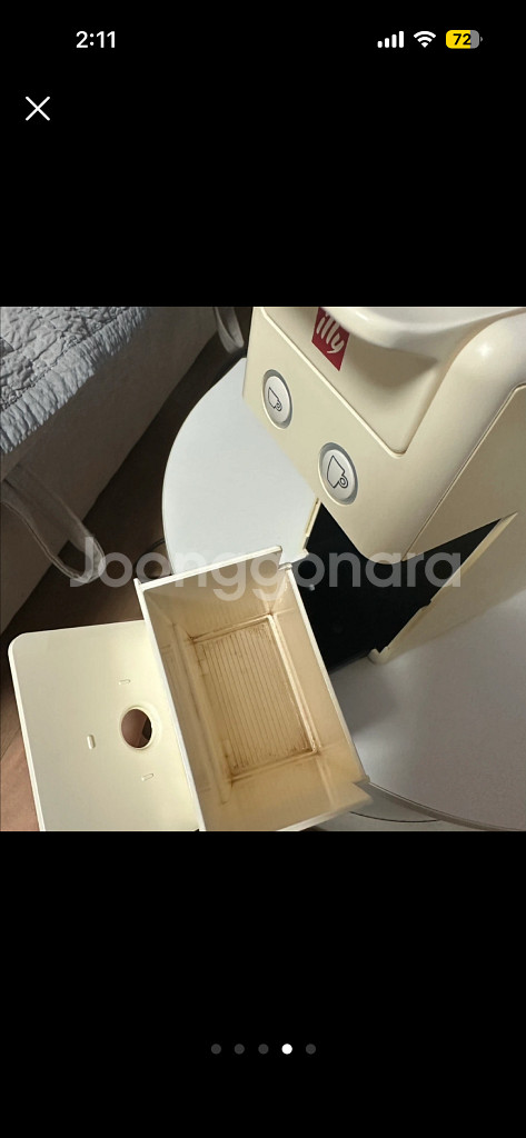 콤팩트한 디자인으로 공간 활용도가 높고, 사용감은 있지만, 작동에는 문제 없습니다 캡슐통에 커피얼룩이랑 겉면이 노래졌지만 사용에는 문제없고 세척완료 상태에요 커피를 요즘 끊게되어 이사문제로 내놓아요