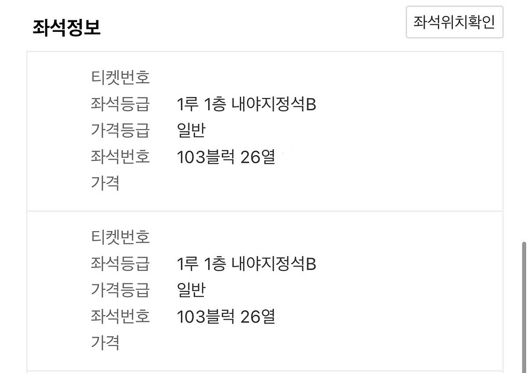 <2025 한국시리즈 3차전> 한화이글스 vs LG 2025년 10월 29일 18시 30분 수요일 [내야지정석 B] 1층 1루 내야지정석B 103구역 2연석 장당 가격입니다 인터파크 선물하기로 바로 보내드립니당 :) 모든 인증 가능합니다 ! ❗️우천 취소로 인한 경기 일정 변경 시 티켓은 그대로 다음 경기날에 사용이 가능합니다 이에 따른 환불은 절대 불가하니 일정 변경되어도 관람이 가능하신 분들만 구매해주시길 부탁드립니다❗️ (재양도 하실 때 도움 가능합니다)
