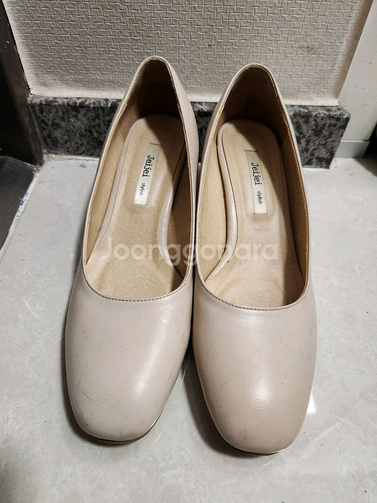 사이즈 : 250mm (굽높이5cm) 여성스럽고 단아한 JEIJEI 여성구두에요 굽높이도 적당하고 기본스타일이라 바지든 치마이든 여러옷들과도 잘 어울려요 약간씩 스친부분 있어요 * 근처이시면 대면 거래, 비대면 문고리 모두 괜찮아요 * GS, CU 근처 편의점으로 반값택배나 집으로 일반택배도(4100원예상) 가능해요
