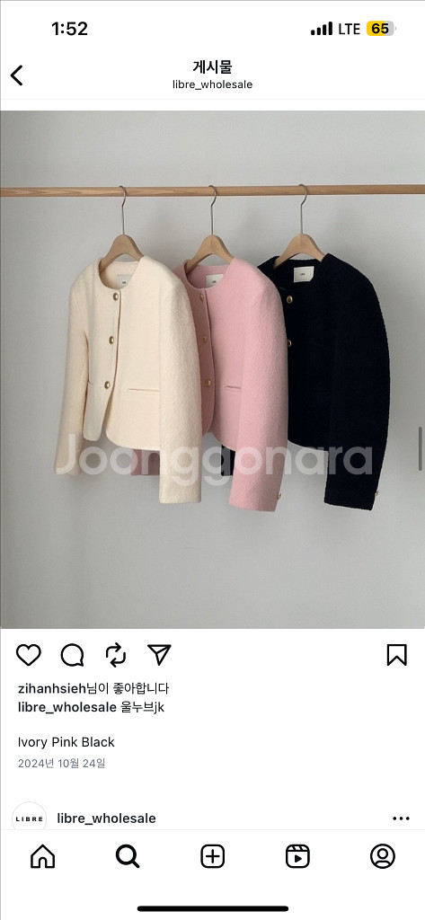 리브레 울 누브 자켓입니다 아이보리 색상에 금장 버튼이 포인트로, 트위드 스타일로 고급스러워요 올초 사두었는데 역시 손이 안 가서 모셔두다가 올려봅니다 시착만 해봤고요 새상품입니다 실물 사진 보내드릴 수 있으니 문의해주시면 보내드릴게요 재질도 좋고 고급스럽습니다 지금도 검색이 되는 제품이예요 가격은 제가 산 거보다 낮춰 올려봅니다