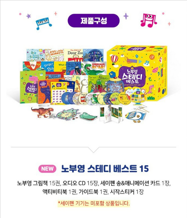 올해 상반기 구매하여 5권 미만으로 1-2회 보아서 거의 새책 수준으로 깨끗한 책이에요 스테디베스트 15권 송앤애니메이션 카드 (영상 시청 가능한 최신버전) CD 15개 새것 시작스티커 새것 워크북 1-2장 사용, 그외 새것 가이드북 사진 잘 확인 후 구매 부탁드려요 택포 잠실 직거래