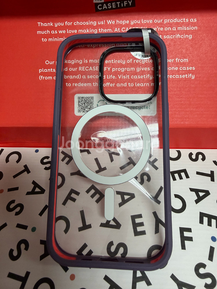 케이스티파이 아이폰14 프로용 맥세이프 호환 케이스예요. 박스 포장 상태로 새 제품이며, 정품등록 안한상태입니다. 보호 비닐도 안벗겼습니다.
