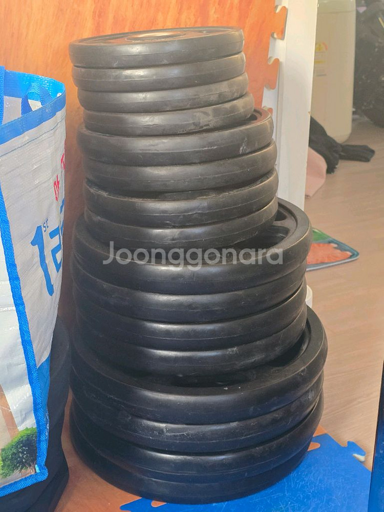 pio 원판 판매합니다. 구매할 때 가격이 제법 나가는 고무원판이었습니다. 2.5 x 4 5 x 4 10 x 4 15 x 4 토탈 130 kg 입니다. 일괄 21마넌 팝니다! 직거래만 해요!