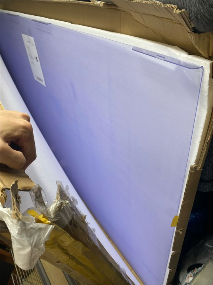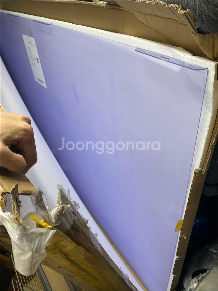 2190x1250 98인치 tv에 맞는 사이즈입니다 새상품으로 배송받고 사용은 하지않았습니다 다만 사진에서 보듯이 구석부분이 조금 까졌습니다 그 외에는 판넬 전체 깨끗합니다 사이즈가 꽤나커서 용달차가 필요합니다 산타페정도 suv 로는 못싣습니다 가져가는게가능 하신분만 연락부탁드립니다.