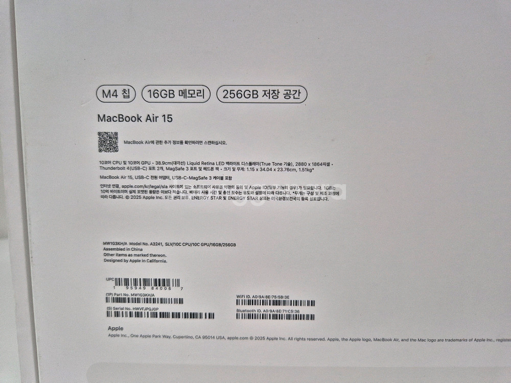 10월22일에 구매한 맥북판매합니다 프리스비에서 구매했구요 구매당시 매장에서 구매한 필름 부착하려고 개봉했습니다 개봉 후 구동확인만 했습니다 싸이클 수 : 2회 추가로 : 매직마우스2 미사용 , 케이스 , 가방 같이 드립니다 총 구매한 가격은 204만원 입니다 개봉해버리면 환불이 안된다고 하여서 저렴하게라도 중고로 판매합니다