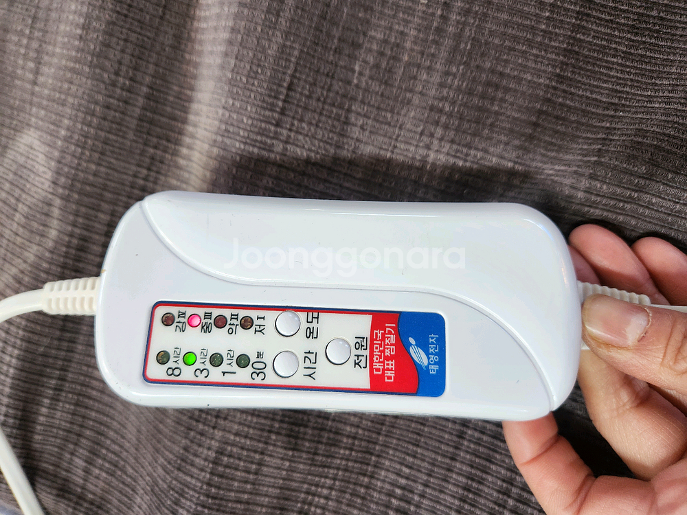 태양전자에서 나온 갈색 전기 찜질기입니다 크기가 넉넉해서 등 허리 엎드려서 등 디양하게 지질수 잇어요 전원 조절기로 온도 조절이 가능합니다 - 8시간 자동 OFF 기능이 있습니다 - 시간 설정도 가능합니다 생활 사용감은 있지만, 따뜻하게 사용하실 수 있습니다 크기 55×117 겉의 커버 분리 가능 새척가능
