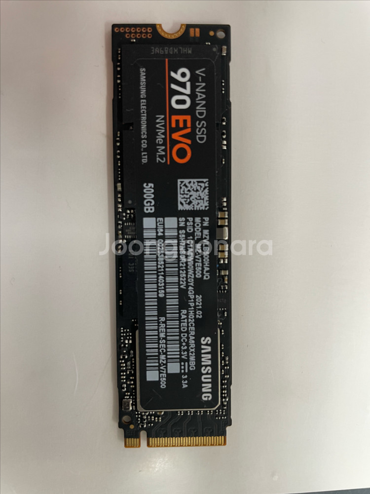 삼성전자 970 EVO M.2 NVMe 중고 판매 합니다. 2021년 2월 제조 입니다. 노트북에 사용하다가 SSD업그레이드 인해 판매합니다. 주요제원 M.2 (2280)/PCIe3.0x4 (32GT/s)/TLC/DRAM 탑재/DDR4 512MB/컨트롤러: 삼성 Phoenix/ [성능] 순차읽기: 3,400MB/s/순차쓰기: 1,500MB/s/읽기IOPS: 200K/쓰기IOPS: 350K/ 직거래, 택배(구매자 부담) 모두 가능합니다. 직거래는 수원 롯데마트 천천동 근처입니다. 문자 먼저 부탁드립니다 ***-****-****상품 정보 내 개인정보는 자동 보호됩니다. 안심결제로 안전하게 거래하세요.