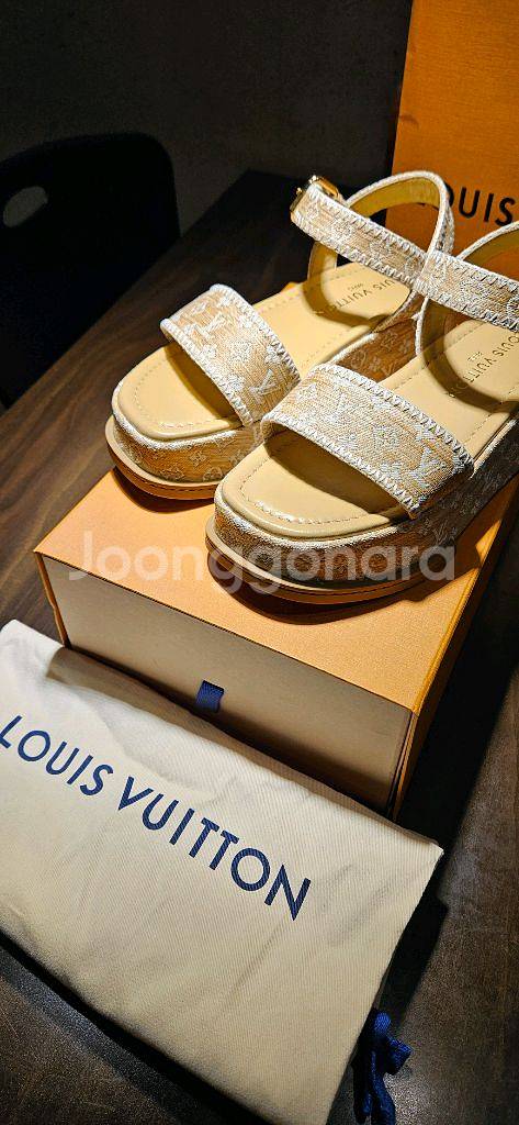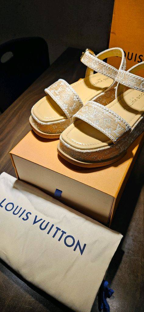 개인정보(거래정보)를 주고받는 행위는 사기에 노출될 수 있으므로 즉시 중고나라로 신고해 주세요루이비통 마야 플렛폼 샌들입니다. 베이지색 바탕에 LV 로고 패턴이 있는 디자인이에요. 촬영때문에 1회만 착용 했어요. 박스와 더스트백 종이가방 같이 드립니다~ 정품이고 2025 5월24일 현대 백화점 구입했어요.