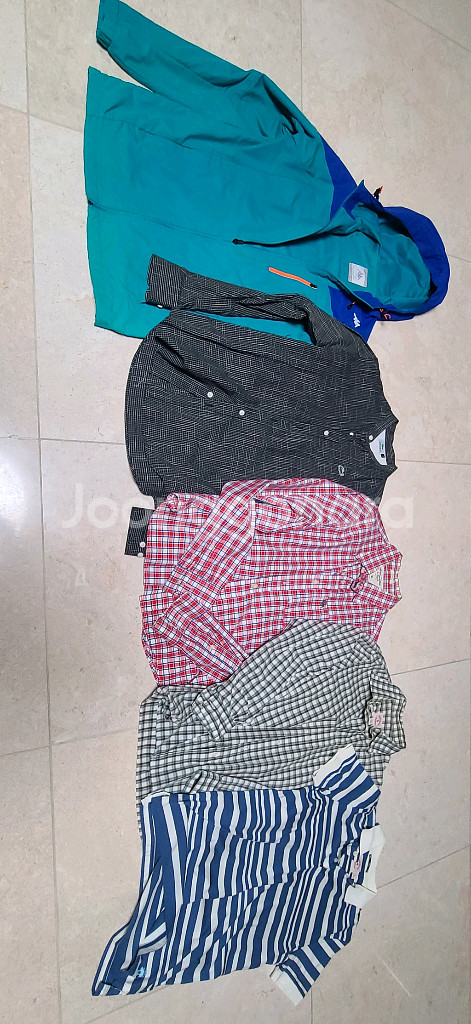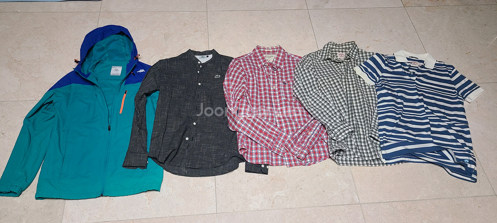 남성 S(M)사이즈 상의 5벌 일괄 1) 카파 그린 컬러 바람막이 자켓: M사이즈(가슴단면 52cm) 2) 라코스테 블랙 체크 긴팔 셔츠: M사이즈(가슴단면 47cm) 3) 아베크롬비 레드 체크 긴팔 셔츠: M사이즈(가슴단면 50cm) 4) 브룩스브라더스 그린 체크 긴팔 셔츠: S사이즈(가슴단면 47cm) 5) 브룩스브라더스 블루 스트라이프 반팔 티셔츠: S사이즈(가슴단면 46.5cm) * 일괄로만 판매합니다.