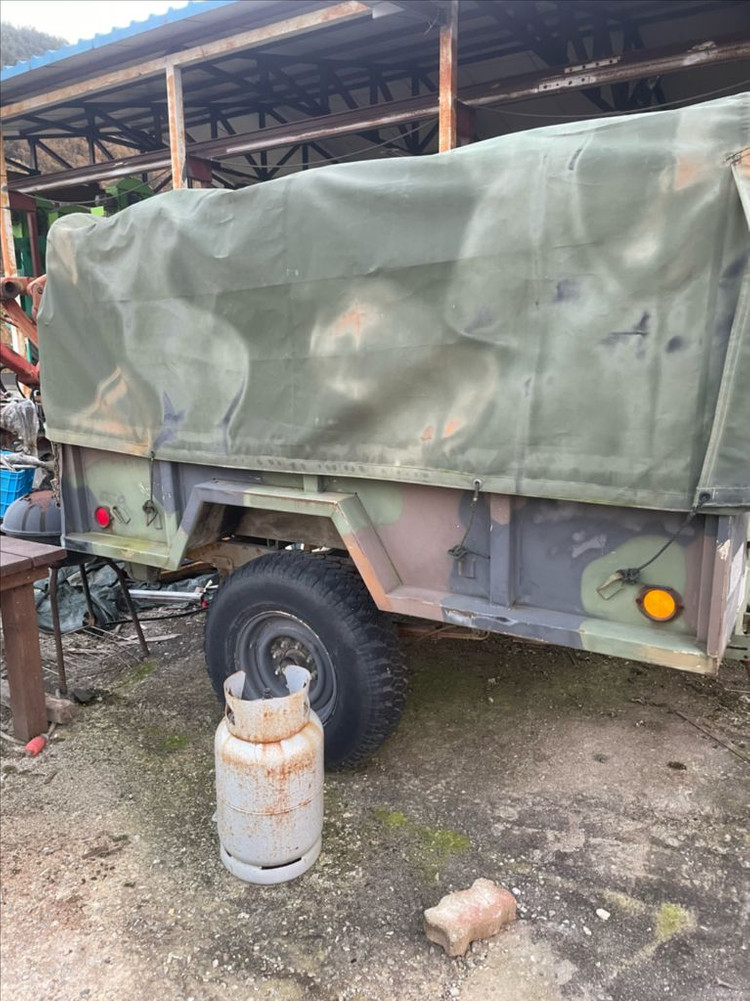 군용 트레일러 (M101A2 유사형) 실제 군부대 납품 사양으로 프레임 튼튼하고 하부 부식 거의 없음.. • 크기 : 약 2500 x 1800 x 1300mm • 견인 방식 : 루프형 히치 (핀타입) • 용도 : 캠핑 개조, 농기계 견인, 야외 창고, 발전기 운반용 등 ⸻ 🚛 홍천 직접 수령 / 근처 화물 협의 가능