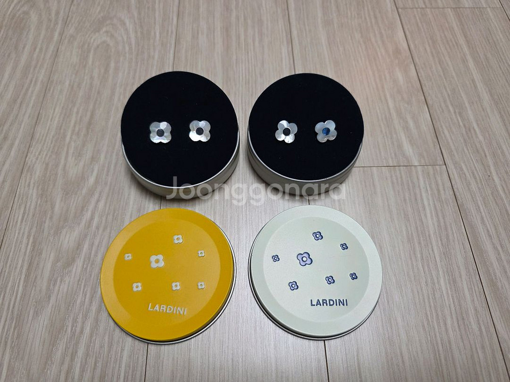 라르디니 자개 커프스링크입니다. 버튼홀에 따라 부토니에로도 활용할 수 있습니다. 신품입니다. 좌측 노란 스틸 케이스에 넣어서 보내드립니다. 우측 판매완료