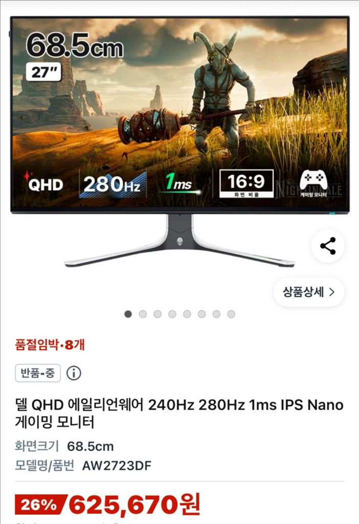 개인정보(거래정보)를 주고받는 행위는 사기에 노출될 수 있으므로 즉시 중고나라로 신고해 주세요델 AW2723df 또는 AW2725df 삽니다. 3년 보증 안끝난 제품으로 구매하며, 2723은 40만원 2725는 50만원에 삽니다. 대전 세종 청주 천안 까지는 가드립니다. 듀얼로 똑같은 모니터 쓰고싶어서 최대2대까지 삽니다.
