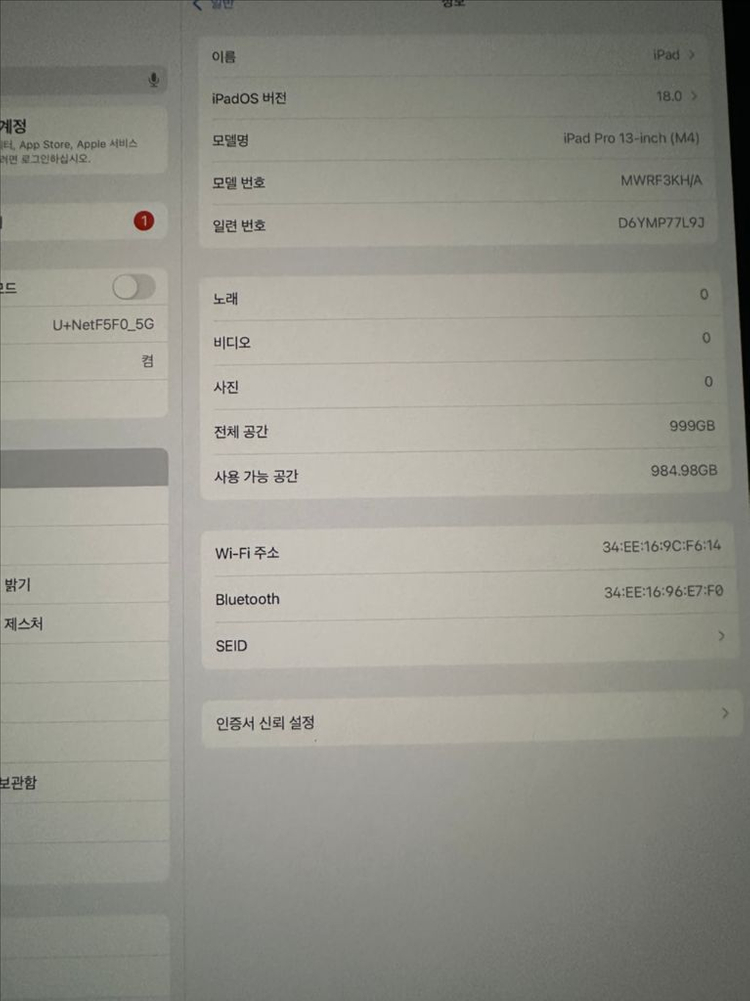와이파이버전 블랙색상입니다 애플케어플러스 기간은 내년 7월 초까지입니다 명의양도 절차는 못하지만 애케플 수리시 사용엔 문제 없습니다 애케플 사라지면 환불해드립니다 거의 사용안한 새거급이구요 배터리사이클 4회로 증명됩니다 풀박스입니다! 기스하나 없습니다