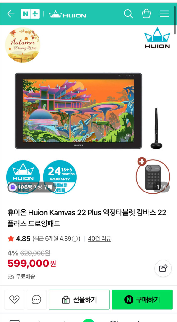 휴이온 캄바스 22 plus 액정타블렛 사고 책상이랑 크기가 안 맞아서 팝니다 새상품 사용안했습니다