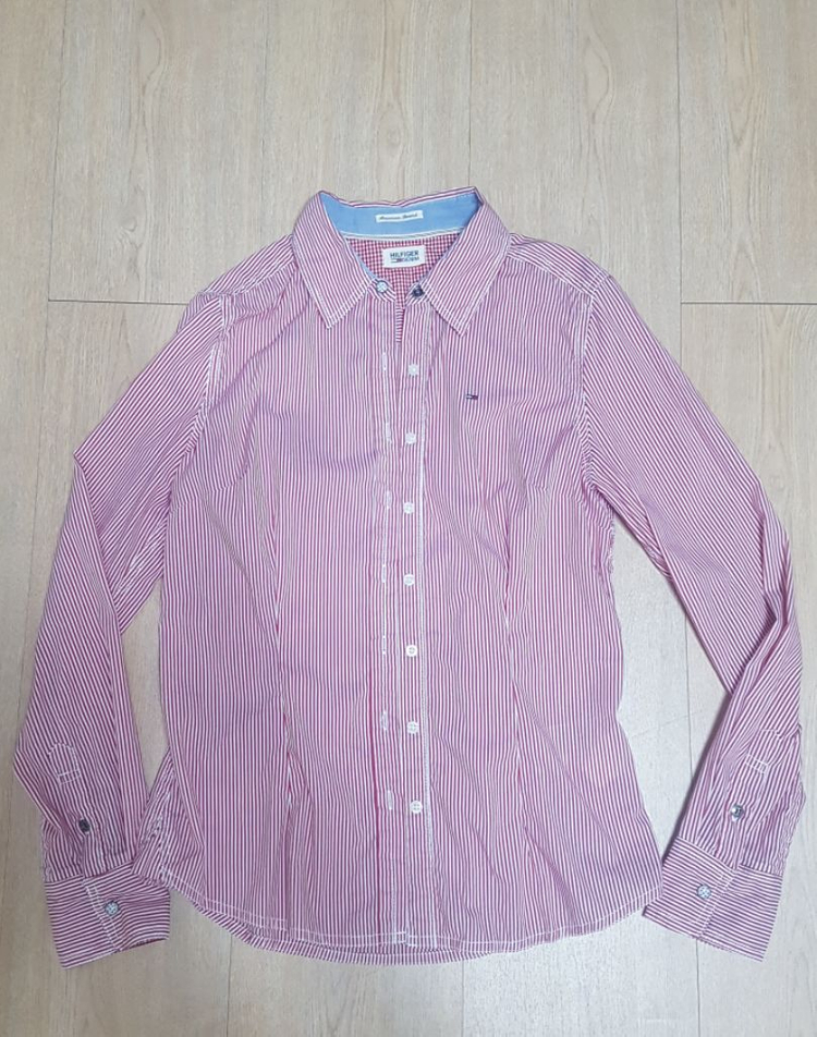 타미힐피거 정품 여성 셔츠 남방입니다. (여성44-55가능) 실착 몇회로 보관 잘해서 상태 완젼 좋습니다. 단독으로 입어도 니트 자켓 등 안에 이너로 입어도 어디든 다 잘 어울리며 허리 라인이 들어가 날씬해 보이는 옷 입니다.