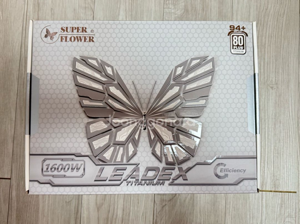 [SuperFlower] SF-1600F14HT LEADEX TITANIUM (ATX/1600W) 팝니다. (리퍼 새제품) 오픈마켓에서 60만원 정도에 구매 하였습니다. 2023년 8월쯤 구매 하였고, 보증기간 8년 남았습니다. - 80 PLUS Titanium 인증 - 1600W 고용량 - 풀 모듈러 디자인 - 박스, 케이블, 설명서 등 풀 구성품 - 본체는 리퍼 새 제품입니다. 오픈마켓에서 새제품 비싸게 구매하지 마시고, 저렴하게 구매하세요.