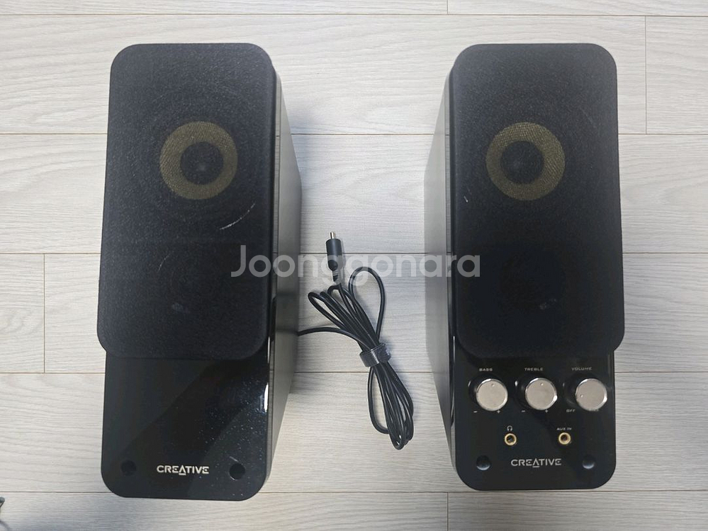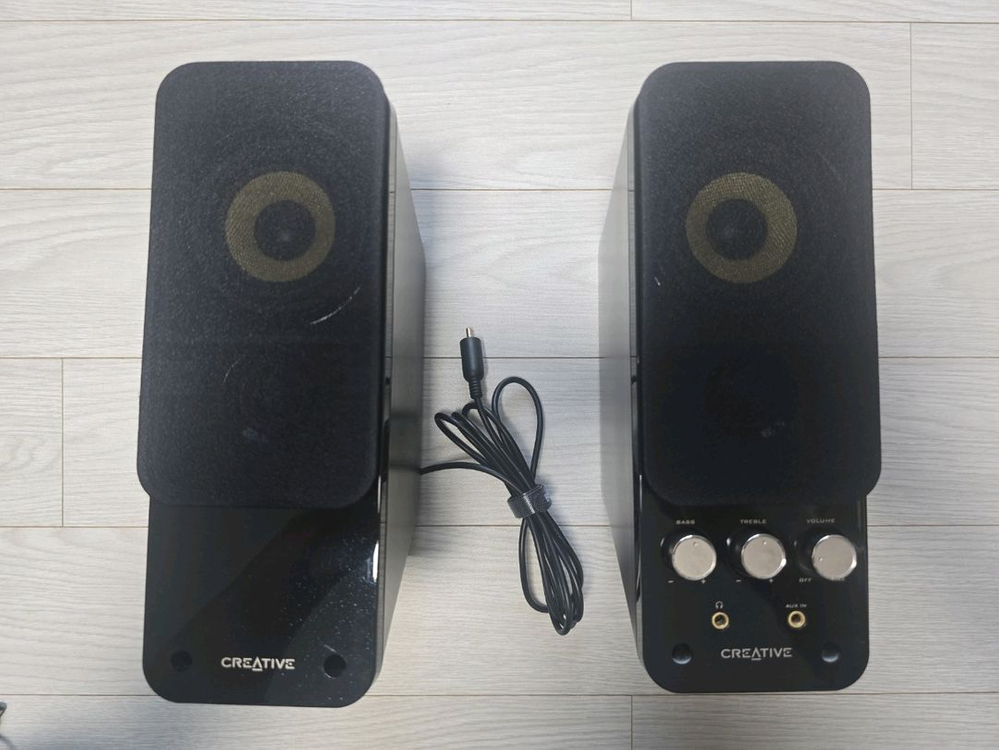 크리에이티브 t20 시리즈2 스피커 입니다. 사용한지 4년쯤 넘은것 같습니다. 박스없습니다. 구성품은 사진에 보이는것이 전부 입니다. 사용흔적 있습니다.(조작버튼 등, 사진 참조) 왼쪽 스피커 커버 상단 고정핀 하나가 부러져 있습니다. 사용하는데 문제는 없습니다. 직거래는 대구이고, 타지역은 택배거래합니다.