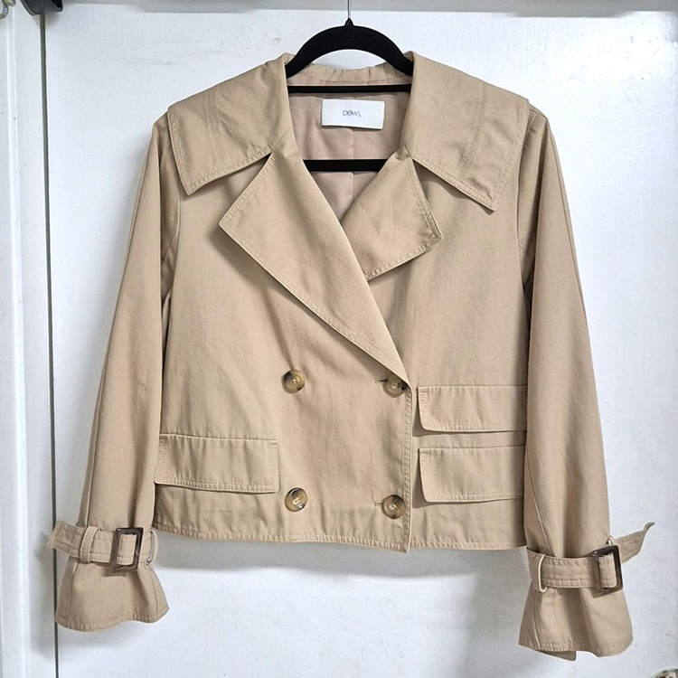 듀엘 브랜드의 베이지 컬러 크롭 트렌치 자켓이예요. 더블 브레스트 디자인에 벨트가 포함되어 있고, 전체적으로 깔끔한 상태입니다. 클래식한 디자인으로 오래 입기 좋은 아이템이에요. 상태는 깨끗합니다 사이즈55/가단54/총장52 55여유있고~66 까지 맞아요 *교환환불불가 *계좌거래 *구매하실분만 톡주세요