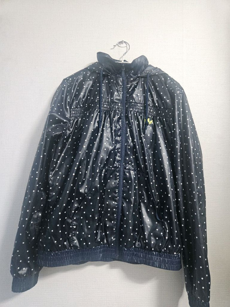 아디다스 정품 여성용 폴카도트 패턴 바람막이예요. - 네이비 색상에 흰색 물방울 무늬가 있습니다 - 폴리에스터 100% 소재로 가볍습니다 - 사이즈는 95 가단55 총장60 - 후드가 달려있어 활용도가 높습니다 귀여운 도트 패턴이 매력적인 아우터입니다. 모자에 지퍼가 두개 있어 여러 스타일로 코디할수 있어요 가볍게 걸치기 좋은 스타일이라 활용도가 높습니다. 별도 문의 없으시면 바로 안전결제 부탁드려요!